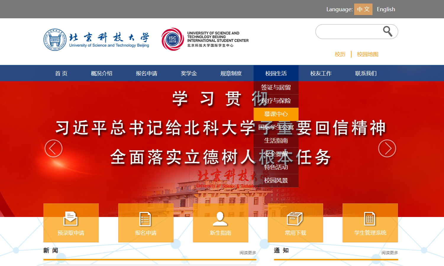 学习路径:英国威廉公司国际学生中心——>校园生活——>慕课中心