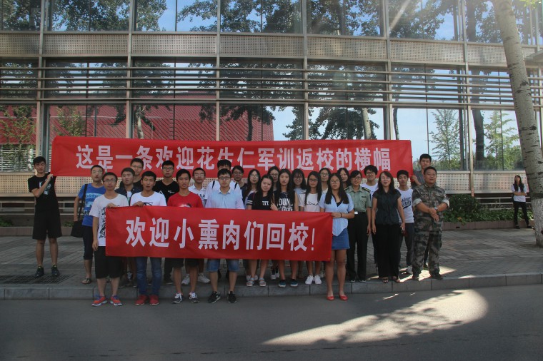 下午一点,迎接人员于万秀园门前集合,并准备了横幅标语等物品迎接新生们军训归来。下午1:32分,新生们进入学校,迎接人员同新生们互相问好,挥手致意。在新生们下车后,学生会成员主动帮助新生将行李运到宿舍。下午2点,迎接人员于万秀园前合影留念。
