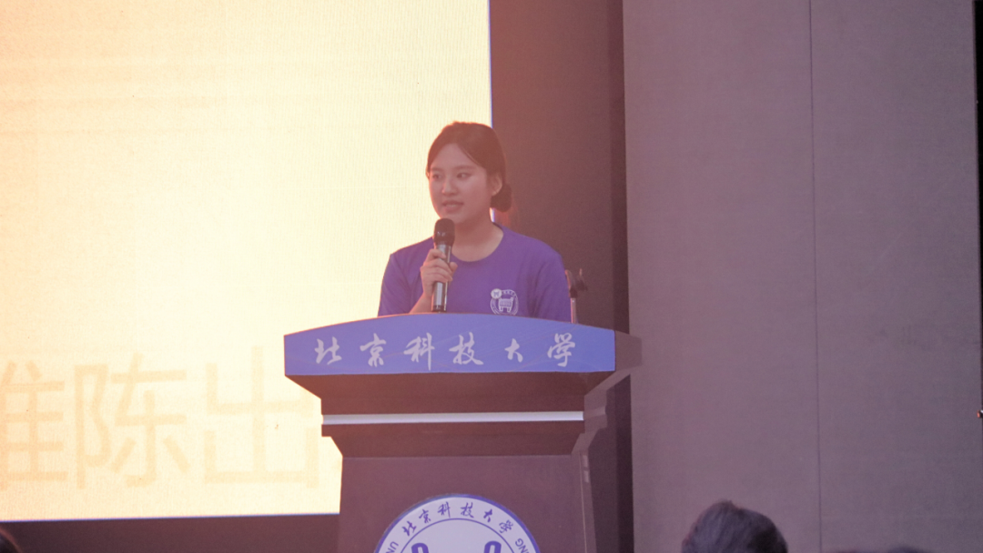 2024级研究生陈倚同学作为在校生代表发言,陈倚同学分享了自己在北科的求学经历和感悟,鼓励新生保持勇敢、勇于创新,以创新为笔书写突破,以勇敢为翼让梦想落地生根。