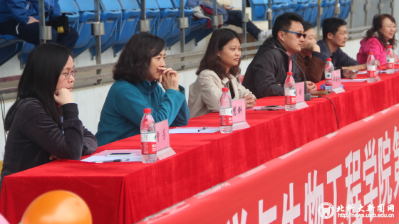 开幕式结束后,各班均投入到了紧张的比赛项目中。“3分钟集体跳绳”、“开火车”、“龙卷风”、“532投篮”、“连环炮”……众多趣味项目让各班级在比赛中增加班级凝聚力,班级成员在比赛中也收获了欢乐。同时进行的还有教职工的趣味比赛项目:“龙卷风”、“欢乐乒乓”等,让教职工老师们在教学之外收获与学生玩耍的乐趣。其中最受瞩目当属由学生和老师组队的“龙卷风”这个比赛项目了,其间同学们可以看到生活中老师最真实的一面,加深同学对老师的了解,同时,也增强了老师和学生之间的默契程度,有利于以后的英国威廉建设。比赛之余,更有各班代表登台演唱,以歌声的形式为自己所在的班级助威,也为本届的运动会增色不少。在比赛的最后还有趣味问答环节,一个个新颖奇特、且与专业知识挂钩的问题,吸引了运动场上几乎所有的同学,也让参与的同学乐在其中。